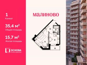 Продается 1-комн. кв-ра площадью 35,4 кв.м на 12 этаже 12 этажного монолитно-кирпичного дома в ЖК ''Малиново''. АО ГК ОСНОВА является крупным застройщиком Москвы и Московской области. В девелоперском портфеле Компании на разных стадиях реализации сегодня находятся 20 жилых проектов в столичном регионе площадью порядка 2 млн м2, а также один реализованный проект в Чехии.Проект ЖК ''Малиново'' один из 20 проектов АО ГК ОСНОВА, он представляет собой 12-ти этажный кирпично-монолитный жилой комплекс, который находится в одном из наиболее экологически чистых районов Подмосковья - Звенигороде. Комплекс расположен в микрорайоне Восточный, в 5 минутах до ЦКАД и в 42 км от МКАД. Сердце города находится буквально в пятнадцати минутах ходьбы от месторасположения ЖК. ЖК ''Малиново'' располагается в районе с развитой инфраструктурой и хорошей транспортной доступностью. Поблизости находятся детские сады, школы, медицинские учреждения, торговые комплексы, магазины, культурный центр, спорткомплекс, бассейн и памятник природы - Мозжинский овраг. Недалеко от города - горнолыжные трассы, спуски для снегокатов. В 7 минутах ходьбы от ЖК строится новая школа, ввод в эксплуатацию 2024 год.Приобретая квартиру в ЖК ''Малиново'' вы обретаете комфортный стиль жизни в центральной части города. Становитесь счастливым обладателем квартиры с видом на Москву-реку, а также с лоджией с панорамными окнами.Звоните и получите подробную консультацию, специалисты отдела продаж помогут выбрать наиболее подходящий вариант! Дистанционное оформление ипотеки, рассрочка и другие варианты покупки для вашего удобства.