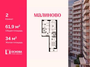 Продается 2-комн. кв-ра площадью 61,8 кв.м на 1 этаже 12 этажного монолитно-кирпичного дома в ЖК ''Малиново''. АО ГК ОСНОВА является крупным застройщиком Москвы и Московской области. В девелоперском портфеле Компании на разных стадиях реализации сегодня находятся 20 жилых проектов в столичном регионе площадью порядка 2 млн м2, а также один реализованный проект в Чехии.Проект ЖК ''Малиново'' один из 20 проектов АО ГК ОСНОВА, он представляет собой 12-ти этажный кирпично-монолитный жилой комплекс, который находится в одном из наиболее экологически чистых районов Подмосковья - Звенигороде. Комплекс расположен в микрорайоне Восточный, в 5 минутах до ЦКАД и в 42 км от МКАД. Сердце города находится буквально в пятнадцати минутах ходьбы от месторасположения ЖК. ЖК ''Малиново'' располагается в районе с развитой инфраструктурой и хорошей транспортной доступностью. Поблизости находятся детские сады, школы, медицинские учреждения, торговые комплексы, магазины, культурный центр, спорткомплекс, бассейн и памятник природы - Мозжинский овраг. Недалеко от города - горнолыжные трассы, спуски для снегокатов. В 7 минутах ходьбы от ЖК строится новая школа, ввод в эксплуатацию 2024 год.Приобретая квартиру в ЖК ''Малиново'' вы обретаете комфортный стиль жизни в центральной части города. Становитесь счастливым обладателем квартиры с видом на Москву-реку, а также с лоджией с панорамными окнами.Звоните и получите подробную консультацию, специалисты отдела продаж помогут выбрать наиболее подходящий вариант! Дистанционное оформление ипотеки, рассрочка и другие варианты покупки для вашего удобства.