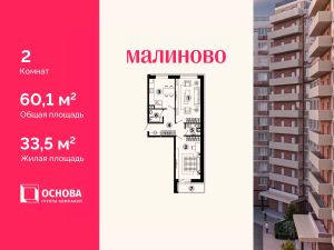 Продается 2-комн. кв-ра площадью 60,1 кв.м на 10 этаже 12 этажного монолитно-кирпичного дома в ЖК ''Малиново''. АО ГК ОСНОВА является крупным застройщиком Москвы и Московской области. В девелоперском портфеле Компании на разных стадиях реализации сегодня находятся 20 жилых проектов в столичном регионе площадью порядка 2 млн м2, а также один реализованный проект в Чехии.Проект ЖК ''Малиново'' один из 20 проектов АО ГК ОСНОВА, он представляет собой 12-ти этажный кирпично-монолитный жилой комплекс, который находится в одном из наиболее экологически чистых районов Подмосковья - Звенигороде. Комплекс расположен в микрорайоне Восточный, в 5 минутах до ЦКАД и в 42 км от МКАД. Сердце города находится буквально в пятнадцати минутах ходьбы от месторасположения ЖК. ЖК ''Малиново'' располагается в районе с развитой инфраструктурой и хорошей транспортной доступностью. Поблизости находятся детские сады, школы, медицинские учреждения, торговые комплексы, магазины, культурный центр, спорткомплекс, бассейн и памятник природы - Мозжинский овраг. Недалеко от города - горнолыжные трассы, спуски для снегокатов. В 7 минутах ходьбы от ЖК строится новая школа, ввод в эксплуатацию 2024 год.Приобретая квартиру в ЖК ''Малиново'' вы обретаете комфортный стиль жизни в центральной части города. Становитесь счастливым обладателем квартиры с видом на Москву-реку, а также с лоджией с панорамными окнами.Звоните и получите подробную консультацию, специалисты отдела продаж помогут выбрать наиболее подходящий вариант! Дистанционное оформление ипотеки, рассрочка и другие варианты покупки для вашего удобства.