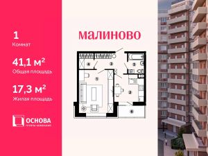 Продается 1-комн. кв-ра площадью 41 кв.м на 1 этаже 12 этажного монолитно-кирпичного дома в ЖК ''Малиново''. АО ГК ОСНОВА является крупным застройщиком Москвы и Московской области. В девелоперском портфеле Компании на разных стадиях реализации сегодня находятся 20 жилых проектов в столичном регионе площадью порядка 2 млн м2, а также один реализованный проект в Чехии.Проект ЖК ''Малиново'' один из 20 проектов АО ГК ОСНОВА, он представляет собой 12-ти этажный кирпично-монолитный жилой комплекс, который находится в одном из наиболее экологически чистых районов Подмосковья - Звенигороде. Комплекс расположен в микрорайоне Восточный, в 5 минутах до ЦКАД и в 42 км от МКАД. Сердце города находится буквально в пятнадцати минутах ходьбы от месторасположения ЖК. ЖК ''Малиново'' располагается в районе с развитой инфраструктурой и хорошей транспортной доступностью. Поблизости находятся детские сады, школы, медицинские учреждения, торговые комплексы, магазины, культурный центр, спорткомплекс, бассейн и памятник природы - Мозжинский овраг. Недалеко от города - горнолыжные трассы, спуски для снегокатов. В 7 минутах ходьбы от ЖК строится новая школа, ввод в эксплуатацию 2024 год.Приобретая квартиру в ЖК ''Малиново'' вы обретаете комфортный стиль жизни в центральной части города. Становитесь счастливым обладателем квартиры с видом на Москву-реку, а также с лоджией с панорамными окнами.Звоните и получите подробную консультацию, специалисты отдела продаж помогут выбрать наиболее подходящий вариант! Дистанционное оформление ипотеки, рассрочка и другие варианты покупки для вашего удобства.