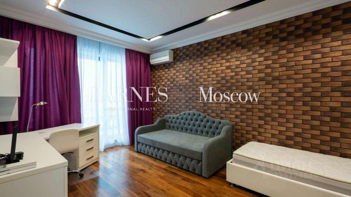 Мастер-спальня очень просторная, с отдельной гардеробной и санузлом. Есть две детские спальни с одним санузлом и гостевая спальня с гардеробом. Для удобства предусмотрен кабинет со всеми необходимыми предметами интерьера. Общая просторная гардеробная на 60 квадратных метров с большим зеркалом, много места для хранения сезонных вещей и ненужных коробок.